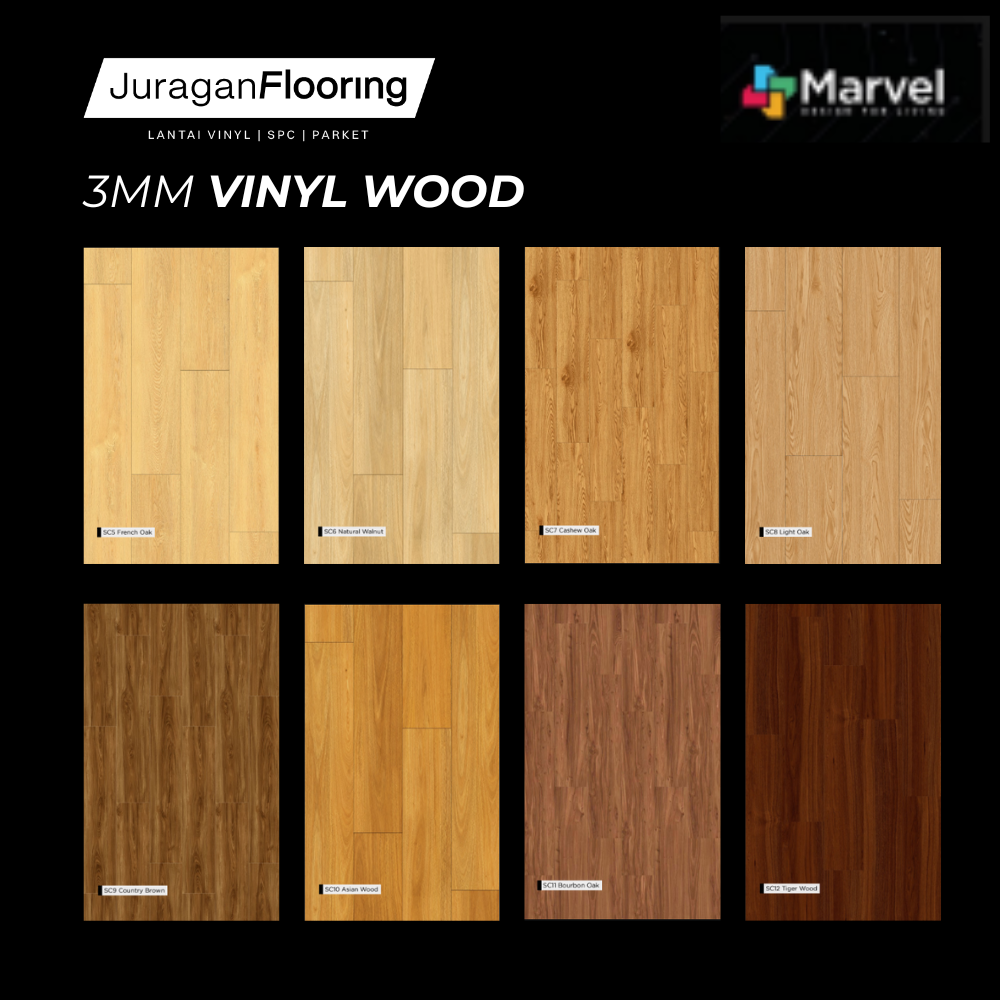 Vinyl lantai 3mm dengan motif woodgrain memberikan tampilan kayu natural dengan ketebalan yang lebih kokoh dan nyaman. Tahan air, tahan gores, serta mudah dibersihkan—cocok untuk rumah, apartemen, kantor, maupun area komersial.
