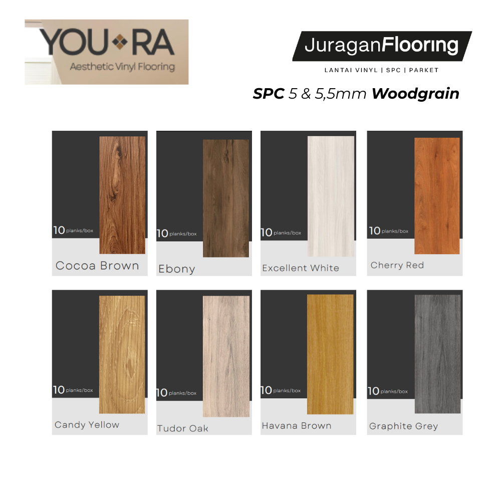 SPC lantai 5mm & 5.5mm dengan motif woodgrain menawarkan tampilan kayu yang natural, kuat, dan premium. Dengan inti batu komposit yang lebih tebal, SPC ini lebih stabil, tahan air 100%, serta tahan terhadap perubahan suhu dan kelembapan. Cocok untuk hunian hingga area komersial.